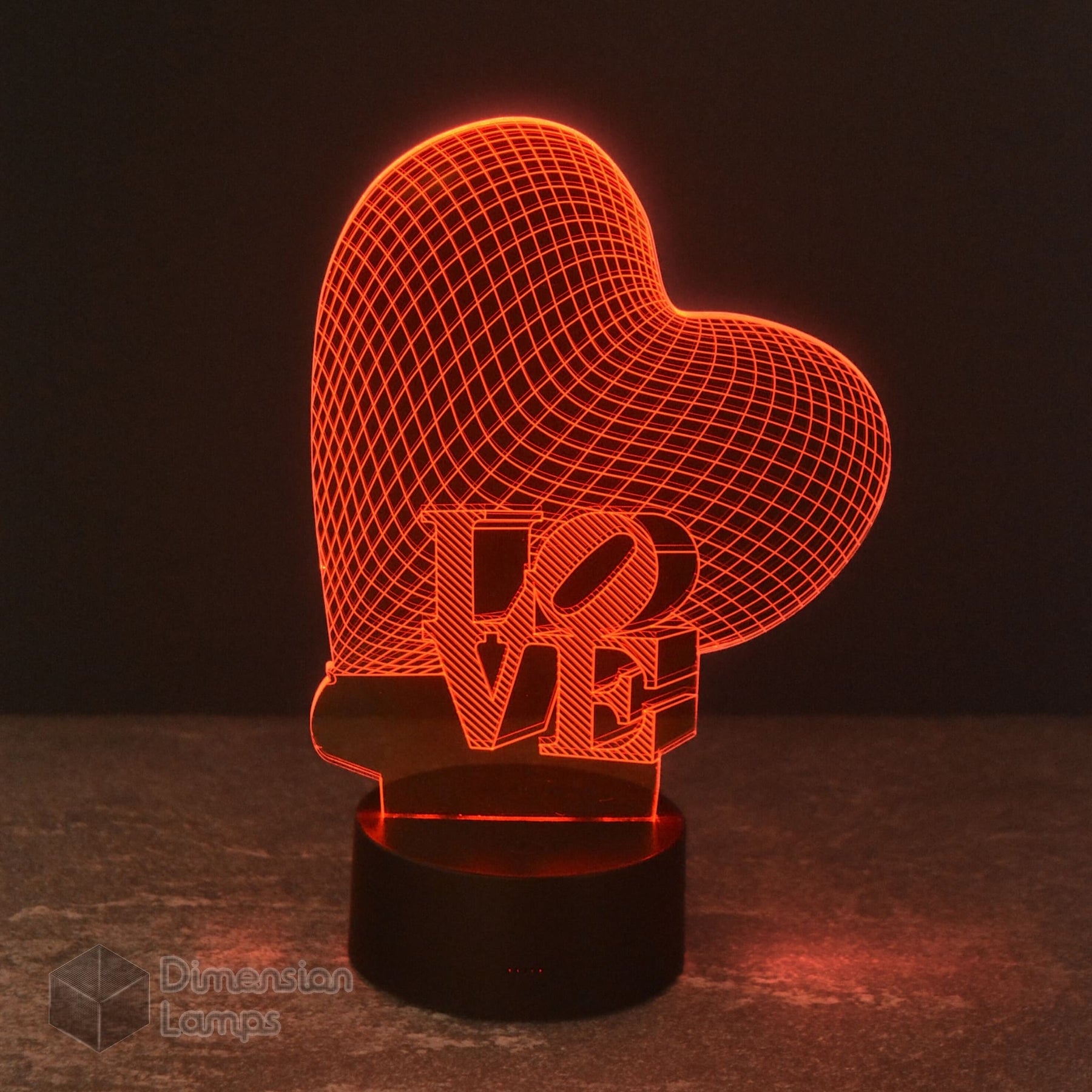 Set the tone for a romantic dinner with the Love Heart acrylic LED 3D Illusion Lamp. The laser-cut precision pattern gives the appearance of a love heart shaped balloon floating in the air. Automatically rotates among 7 colours or lets you choose your favourite colour for a nice soft glow. Low energy consumption and low-heat, so you can leave the light on all night worry-free. The innovative LED base lights up the laser etched acrylic pattern to create a beautiful 3D effect.