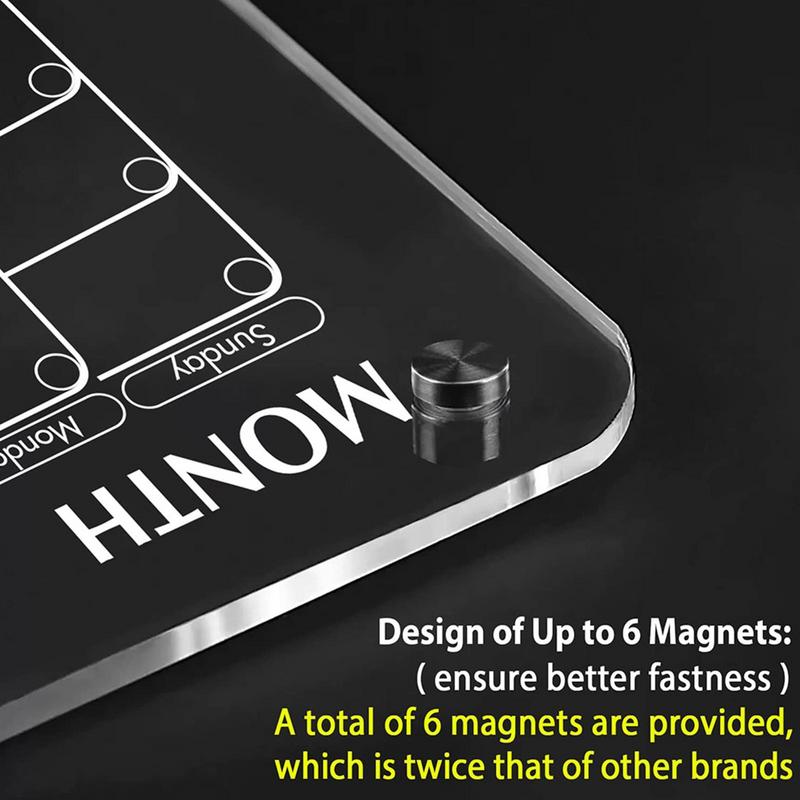 Clear Acrylic Premium Material: Made of clear acrylic high-quality material, the transparent acrylic calendar panel will not obscure the appearance of the refrigerator and will not scratch or break easily.