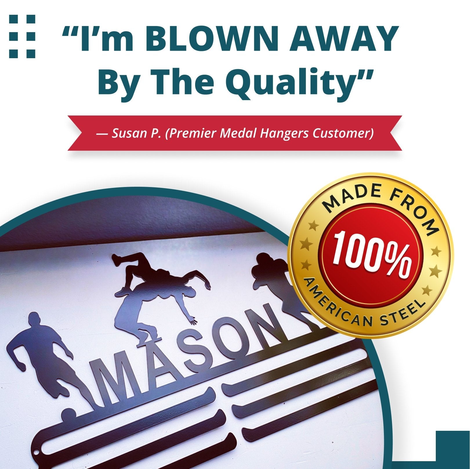 Are you or a loved one passionate about sports? Don't let their hard-earned medals just sit in their drawer or closet. Display them with pride on this beautiful personalized Medal Hanger!