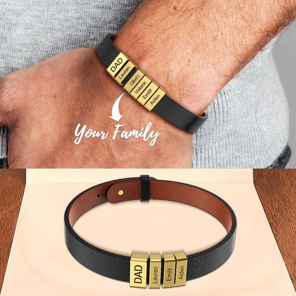 Father's Day Gift Genuine Cowhide Bracelet With Kids Name for Dad