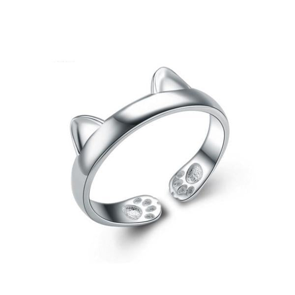 I don't know about you, but this little cat ring is a staff favorite! A sleek, adorable and easily adjustable cat ring is almost more than a girl could ask for! To adjust the ring, slowly stretch the pawtips until you have the purr-fect fit! This ring is like a little kitty-cat hug that you can savor and never let go of. Featuring two little cat ears, this 14K white gold-plated ring has the sweetest tiny paws inlaid on the inside of the band. This unique design paws-itively promises to melt your heart. Even your cats will be relieved that you made this purchase, because it may make you less tempted to squish them when you get home. Everyone wins!