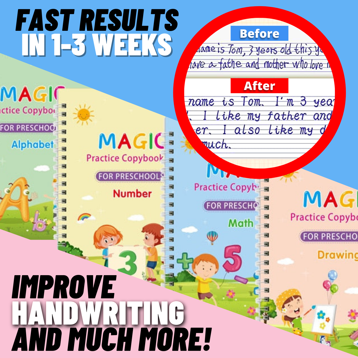 With Magic Copybooks, Your child's handwriting, math, motor skills and overall learning capabilities are greatly enhanced within a week of practice.