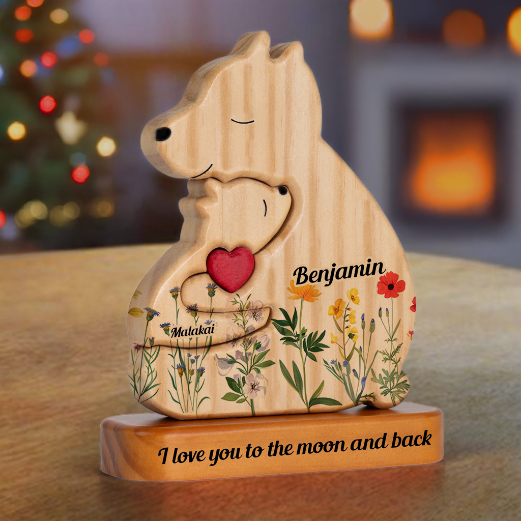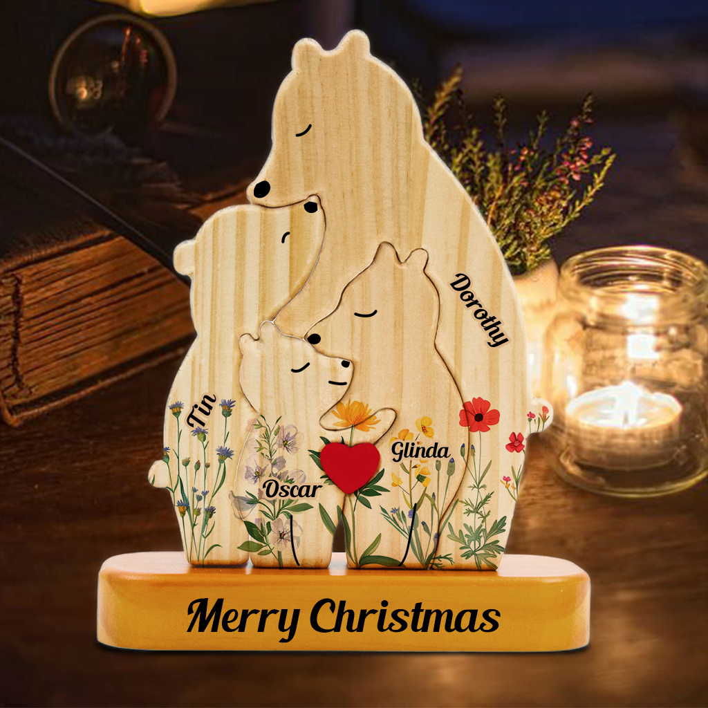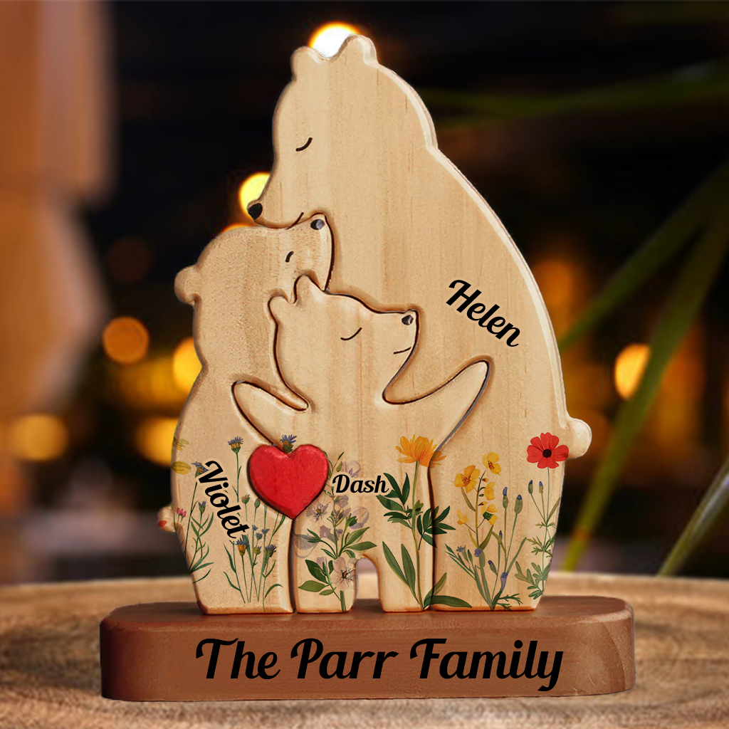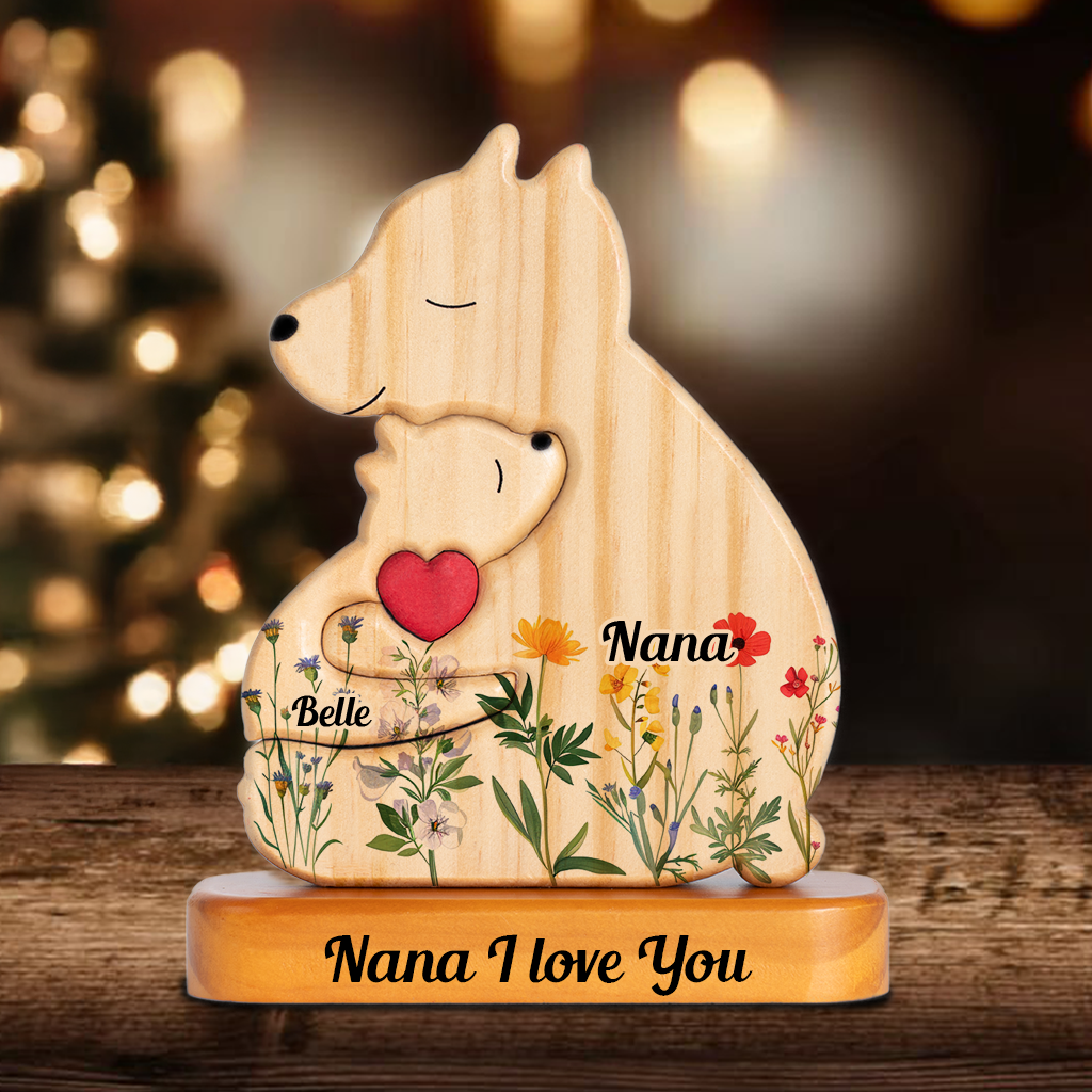 Flower Single Parent Family With Stand - Puzzle Wooden Bear - Christmas Wooden Pet Carvings