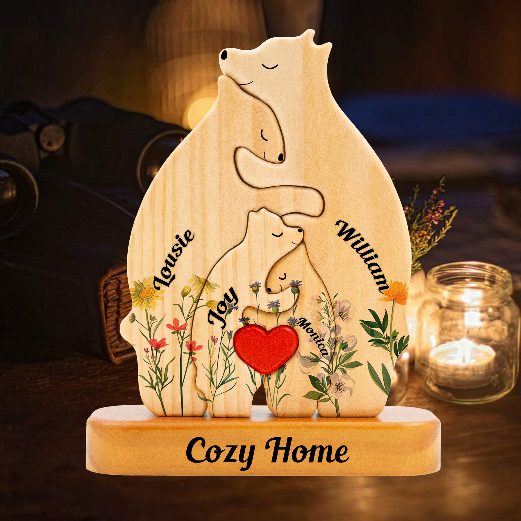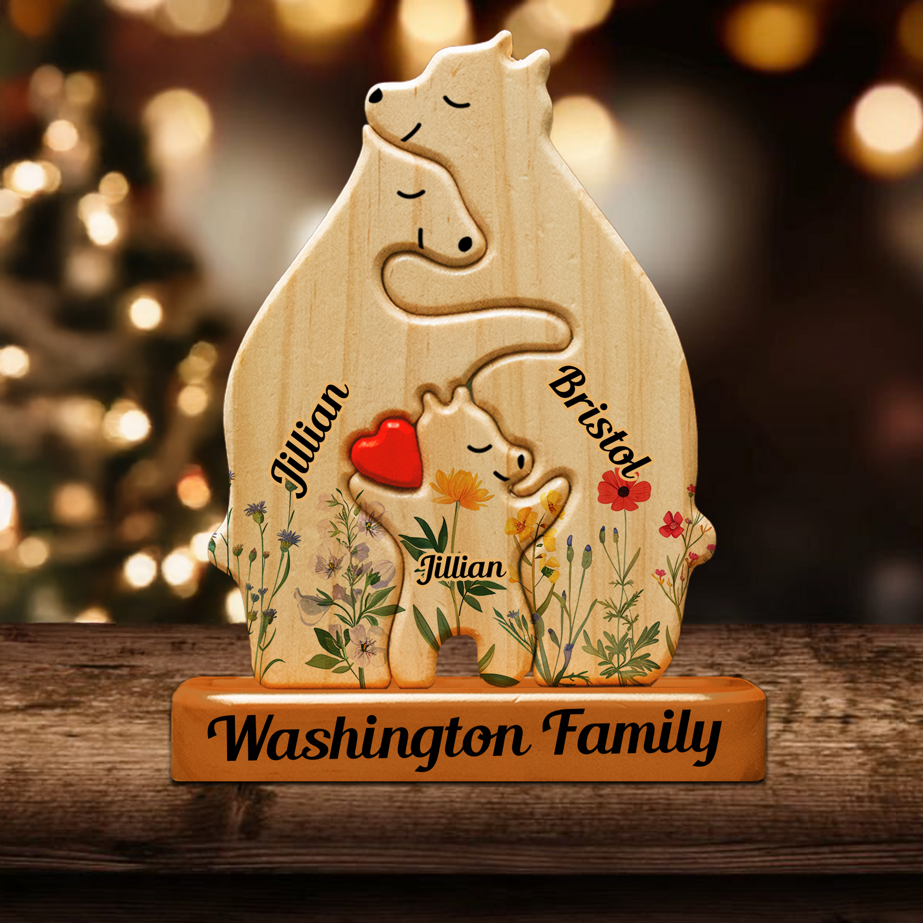 Wooden Bear Family Puzzle Bear Name - Family Keepsake Gift - Gift for Mother's Day, Thanksgiving, Christmas